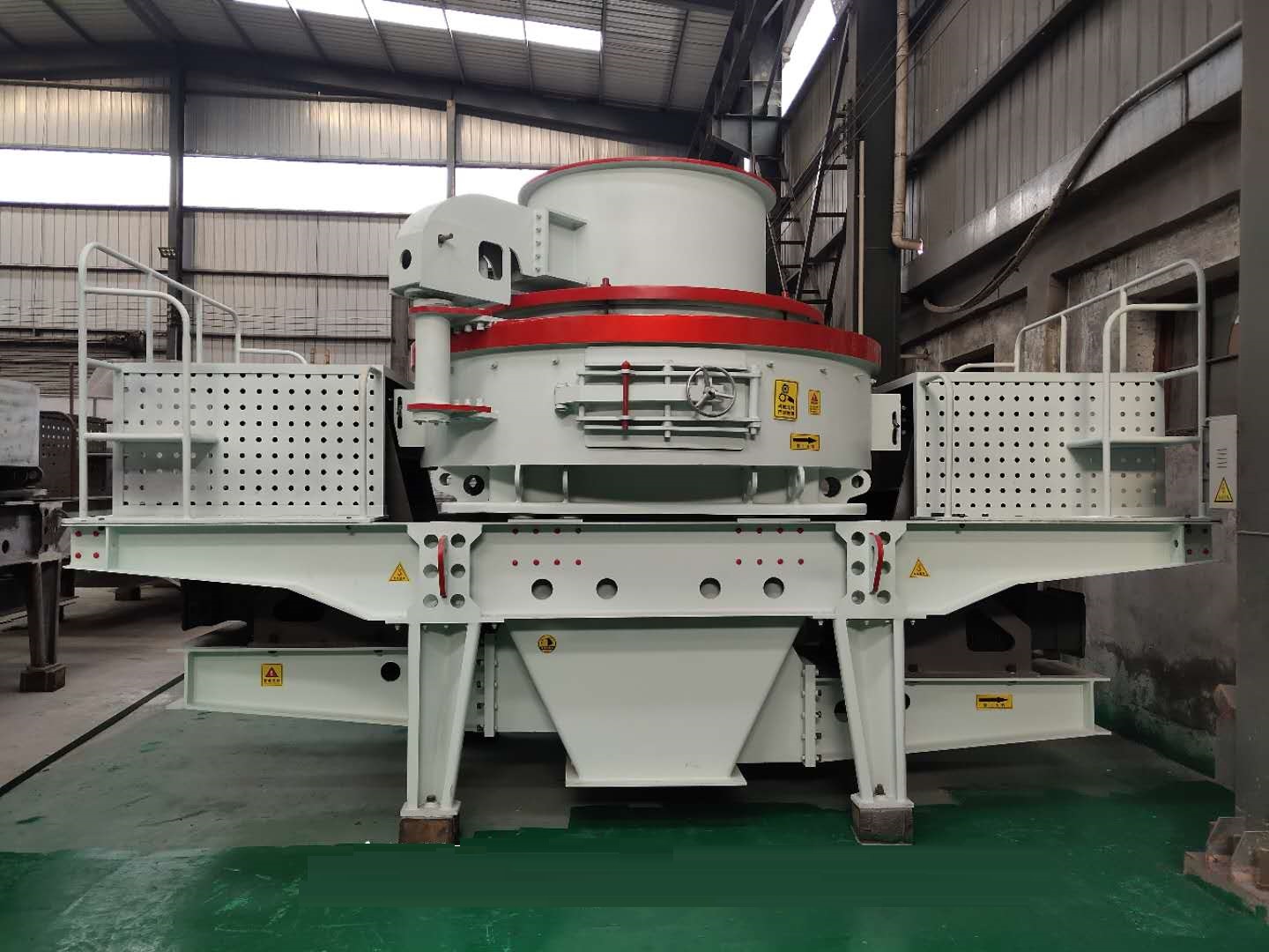 制砂機(jī)的主軸上有2個(gè)軸承,每一個(gè)軸承有一個(gè)油嘴。加油時(shí)制砂機(jī)須停機(jī)。加油前,要把油嘴清理干凈。在正常的運(yùn)轉(zhuǎn)條件下,按照每工作80個(gè)小時(shí)加一次油。定期加油可以防止塵土污染軸承。在多塵土的條件下,加油的頻率必須加倍(即每40個(gè)小時(shí)一次),而潤滑油的數(shù)量減半。切記要避免使用不同種類的混合油脂,例如,在任何條件下,鈣基潤滑脂和鋰基潤滑脂絕不能混合在一起。不要用含鉬的潤滑脂,這是被軸承制造廠禁止使用的。 因此正確的對(duì)制砂機(jī)主軸軸承進(jìn)行潤滑加油是非常重要的維護(hù)措施,我們一定要做好。